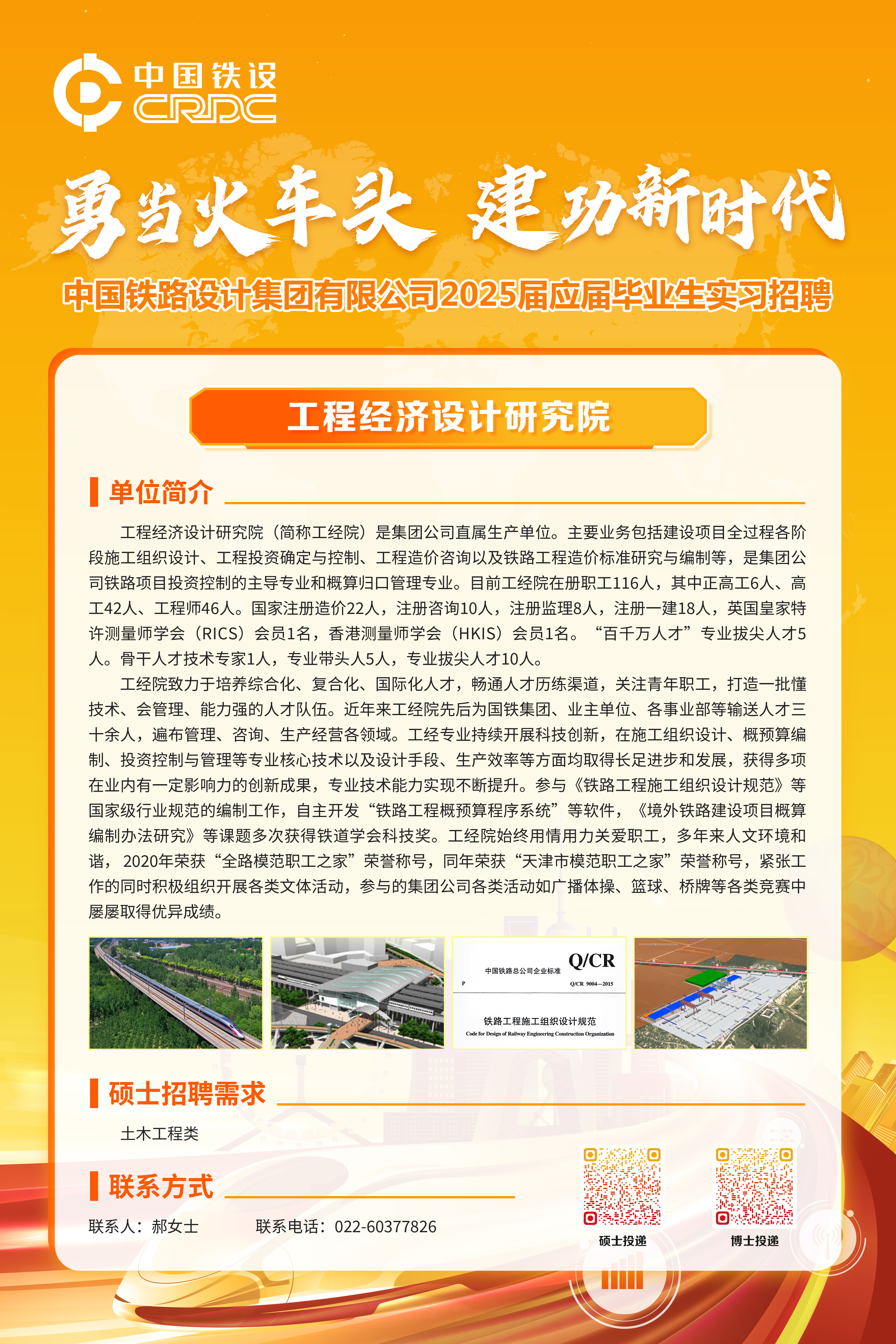 重磅!中国铁设2025届应届硕士毕业生实习招聘