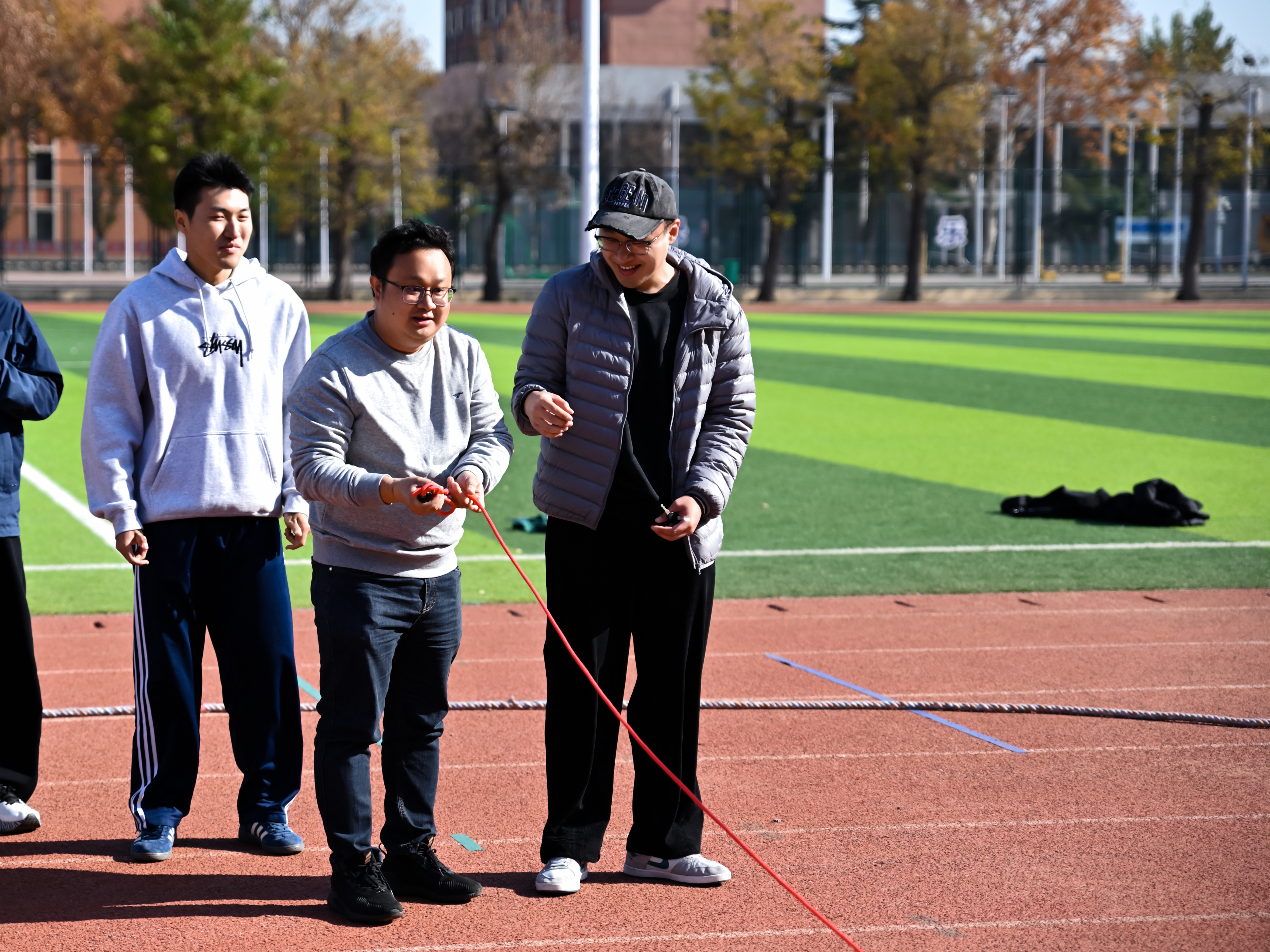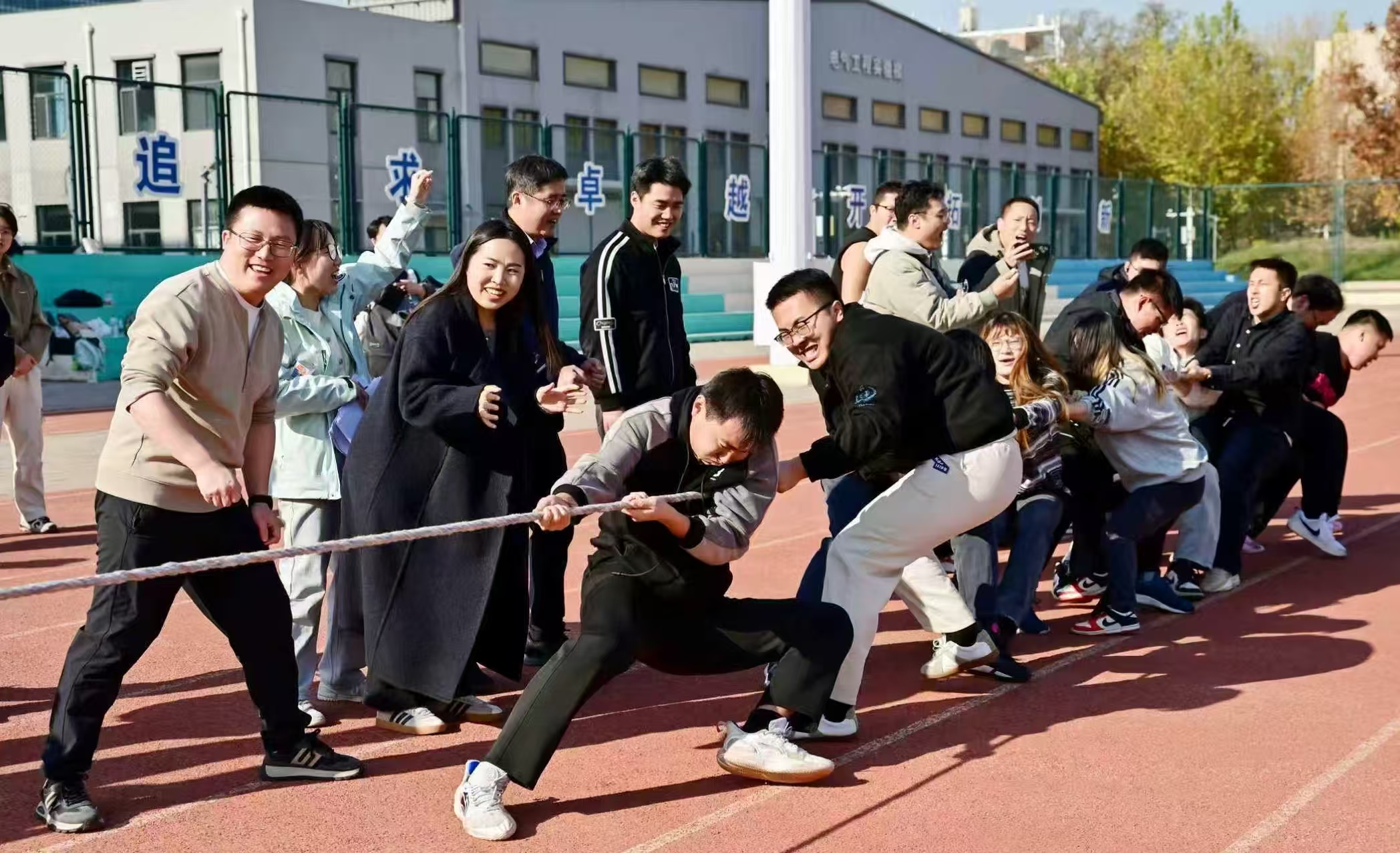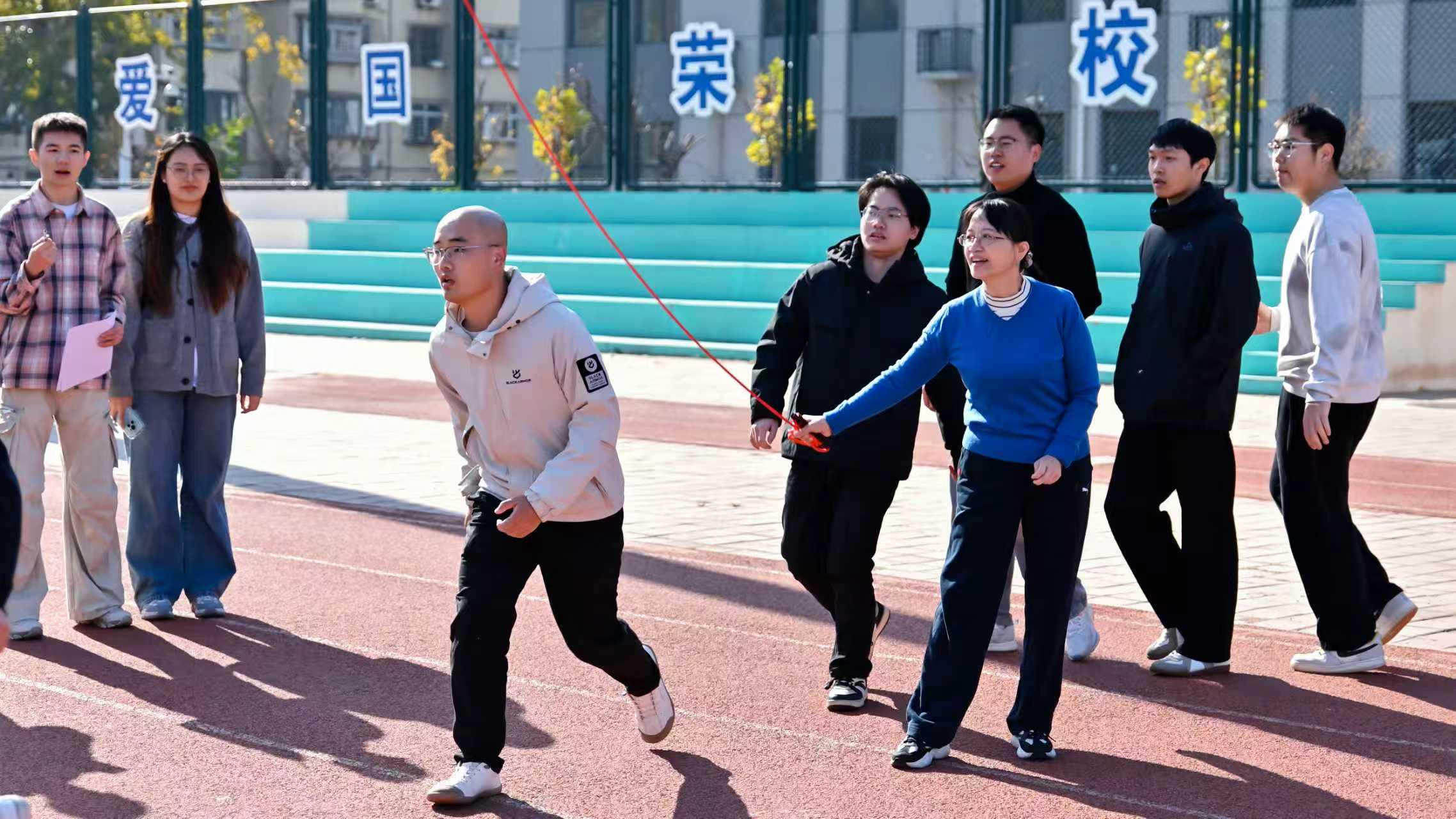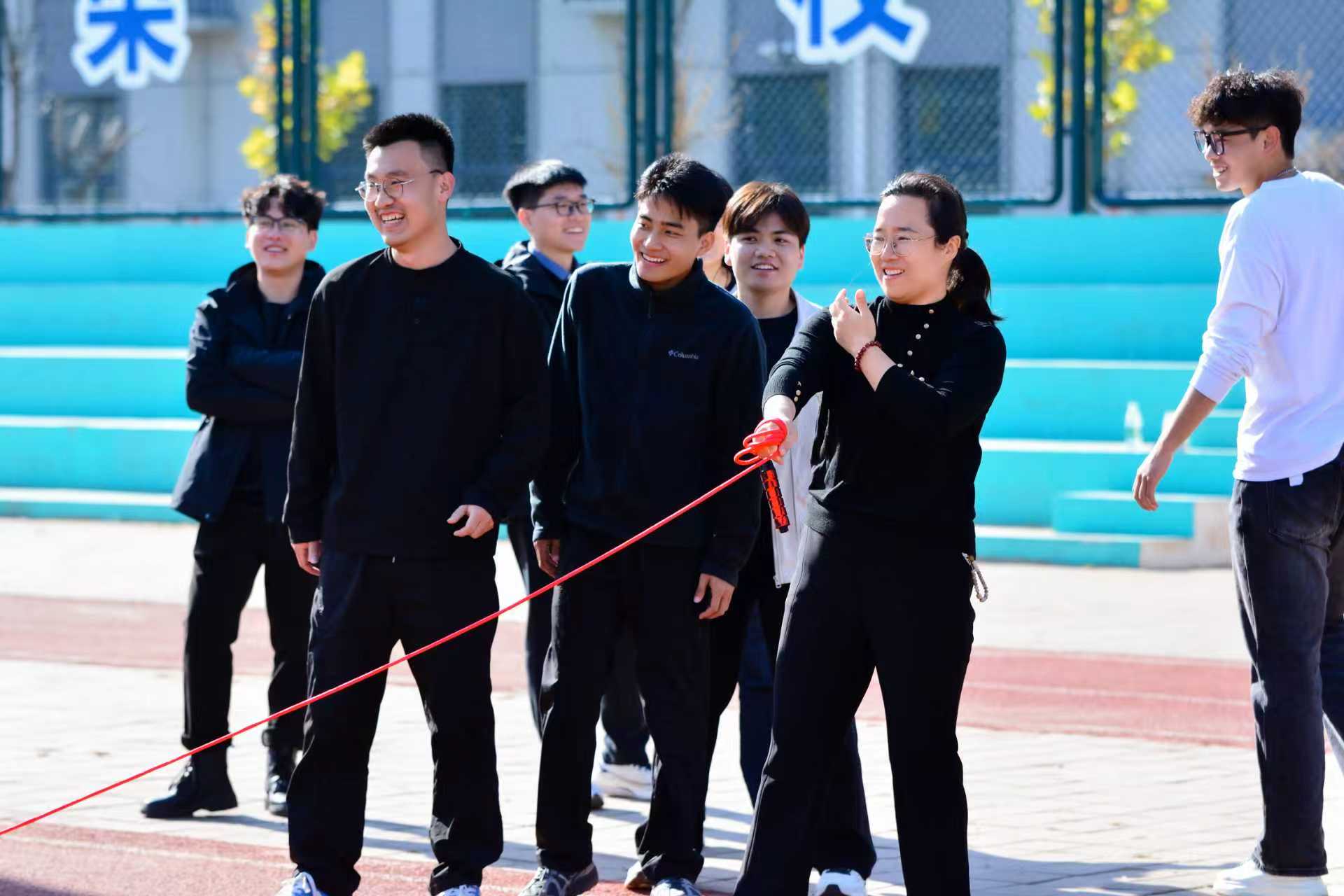 活动以“导学领航传薪火,同心筑梦绘蓝图”为主题,来自三个公司的9支研究生导学团队,共计90余名师生分别参加了跳大绳、套圈党建答题以及团体拔河三项趣味活动。套圈现场,参赛队员专注凝神,精准把控角度与力度,沉稳出手角逐目标;跳大绳环节,队员们身姿矫健、配合默契,在绳影翻飞间全力冲刺佳绩;团体拔河赛场更是气氛热烈,各队伍凝心聚力、劲往一处使,欢笑声与加油声交织回荡,充分展现了导学团队的协作精神与奋进姿态。