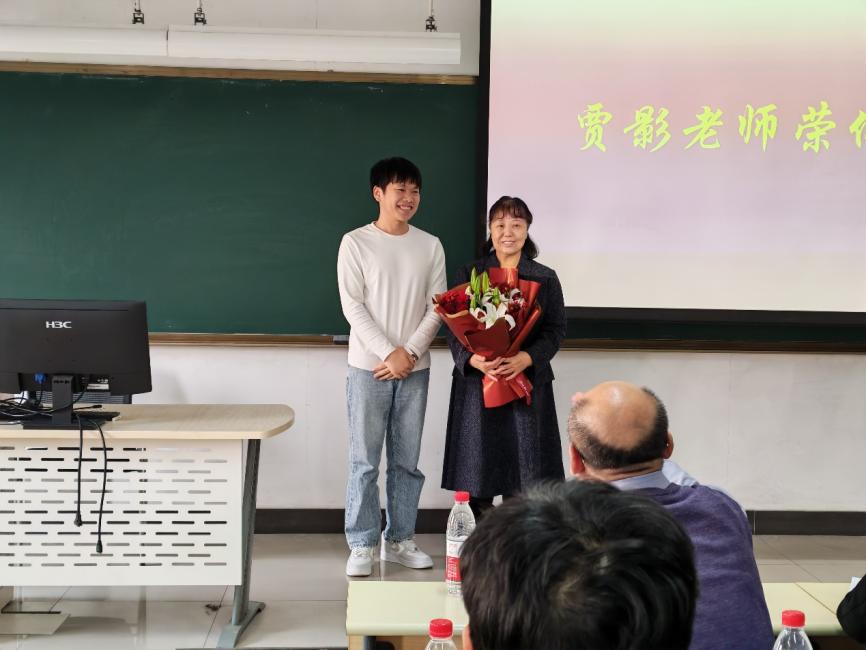 活动中,全体师生还为即将荣休的贾影老师举行了温馨的欢送仪式。员工代表阳云明向贾影老师献上鲜花。贾影老师回顾了自己三十七载从教生涯,分享了育人初心与执教感悟,言辞间充满对教育事业和公司师生的深厚感情。